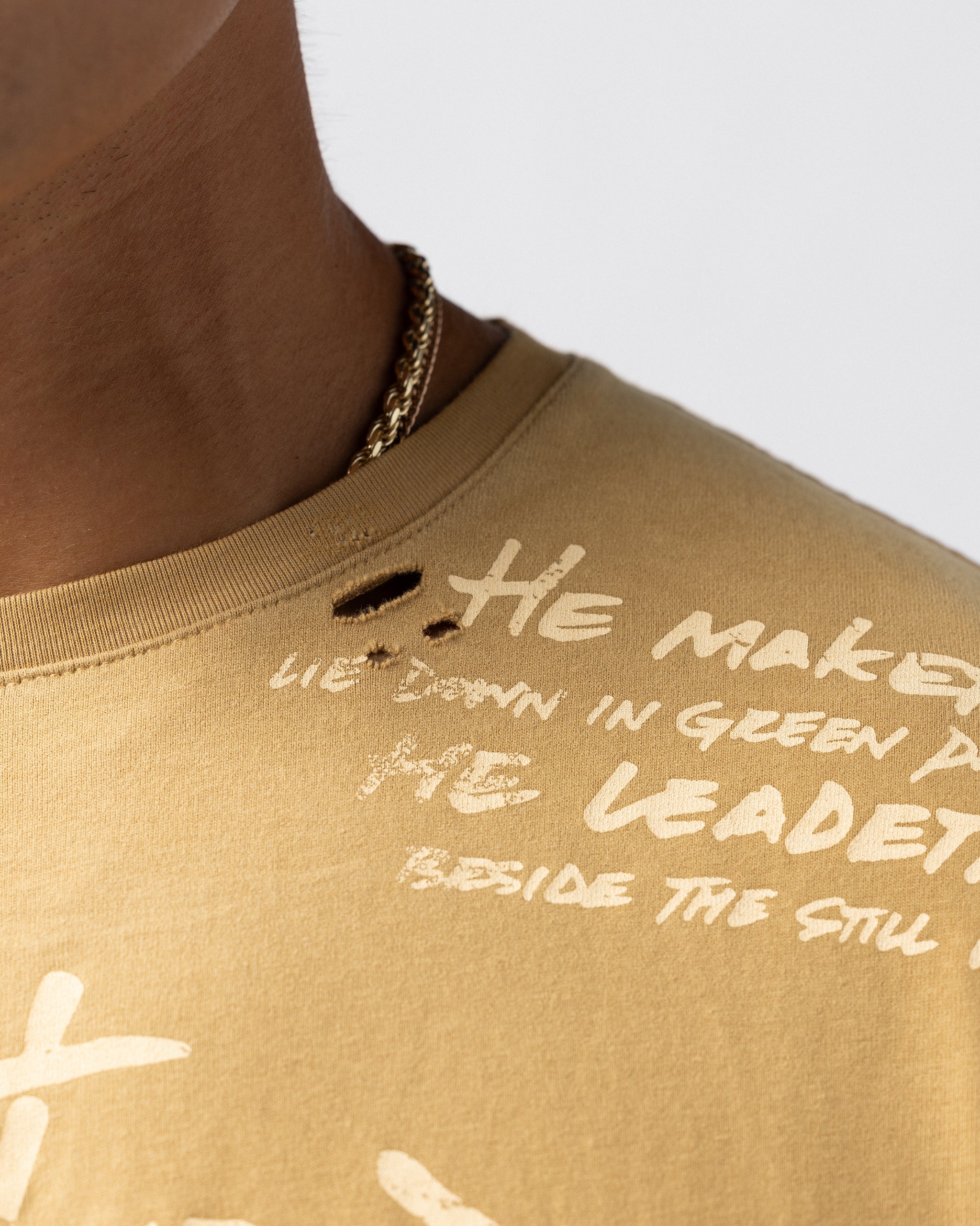 Elevate your wardrobe with the Psalm 23 Distressed Tee, where luxury meets grace in perfect harmony. Truly, a wearable work of art for the discerning soul.