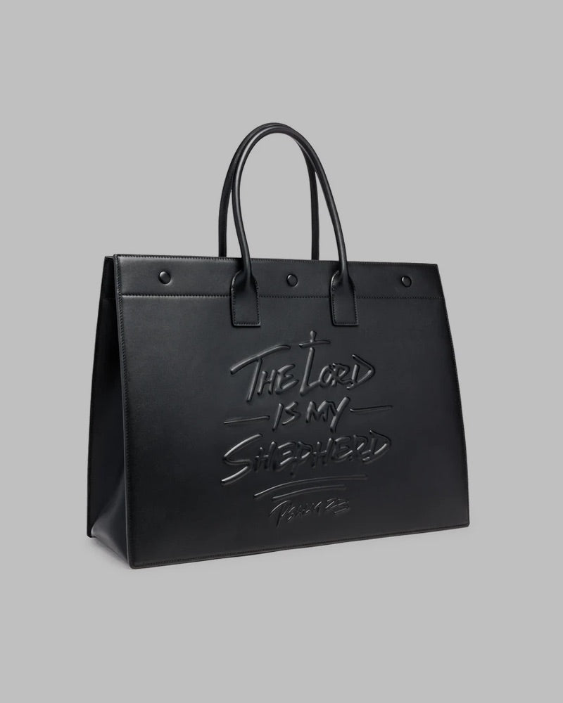 Psalm 23 Large Tote Genuine Leather - Black